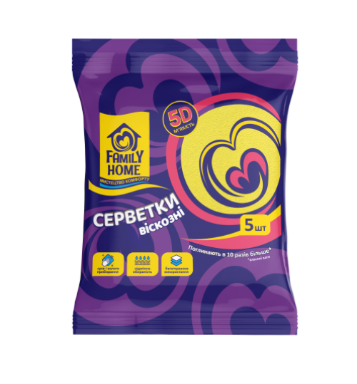 Серветки Фемілі Хоум віскозні 5Д м'якість 5 шт